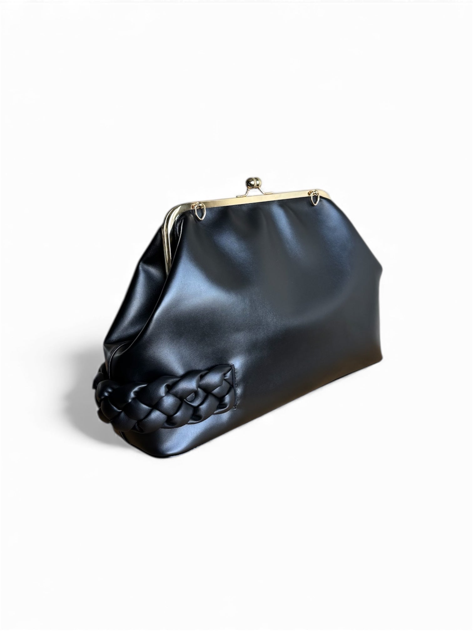 Braided Leather Clutch is a large leather clutch made from premium leather inside and out. This braided leather bag features hand-woven leather details that double as a clutch handle and includes an adjustable shoulder strap for versatile wear. A timeless handcrafted leather clutch perfect for everyday use or evening styling.