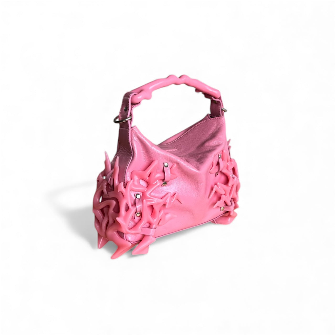 The Dream Bag is a bold leather bag featuring hand-finished 3D printed accessories for a striking, sculptural look. Each bag is crafted by hand, making every piece unique. Made with premium black leather, durable hardware, and a detachable strap, this statement handbag blends innovation and craftsmanship for those who dare to stand out. For the brave. For the different. For the dreamers