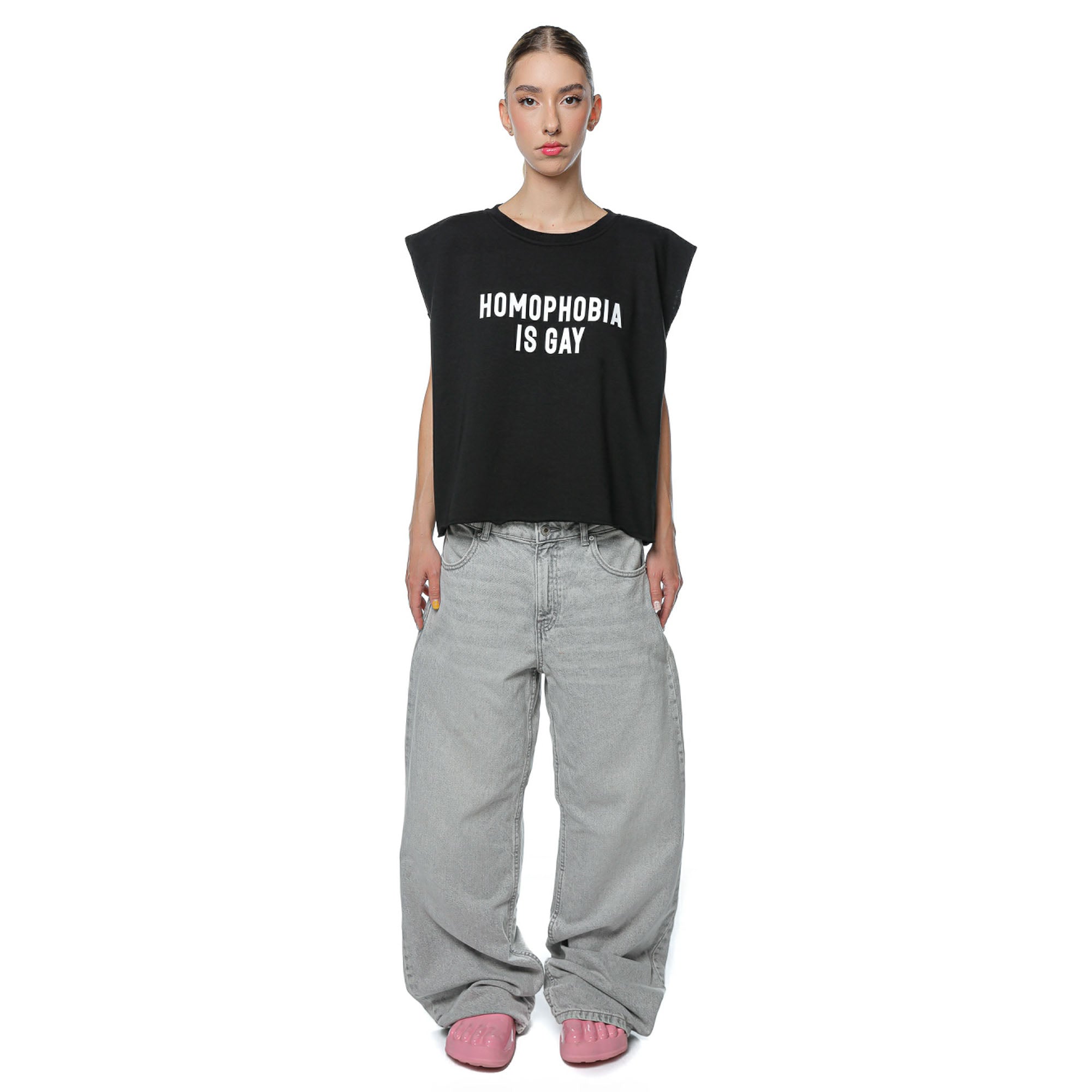 Acest top unisex, realizat din bumbac 100% de calitate, are un design minimalist, fără mâneci, și un croi lejer care se potrivește perfect oricărui tip de corp.